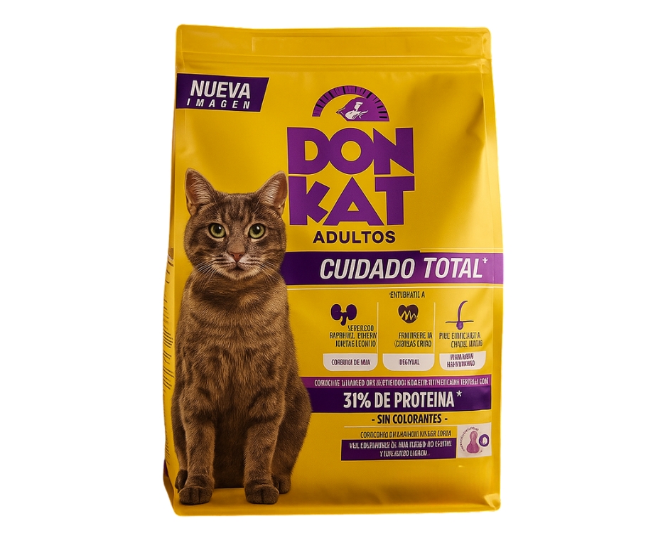 Donkat Adulto es un alimento seco formulado para gatos adultos que buscan una nutrición básica pero eficiente. Contiene proteínas de calidad, vitaminas y minerales esenciales para mantener la energía, salud digestiva y bienestar general de tu felino. Su fórmula ayuda a conservar un pelaje brillante, refuerza el sistema inmunológico y contribuye al control del peso. Es una opción práctica y económica para dueños responsables que desean cuidar a sus gatos sin comprometer la nutrición.